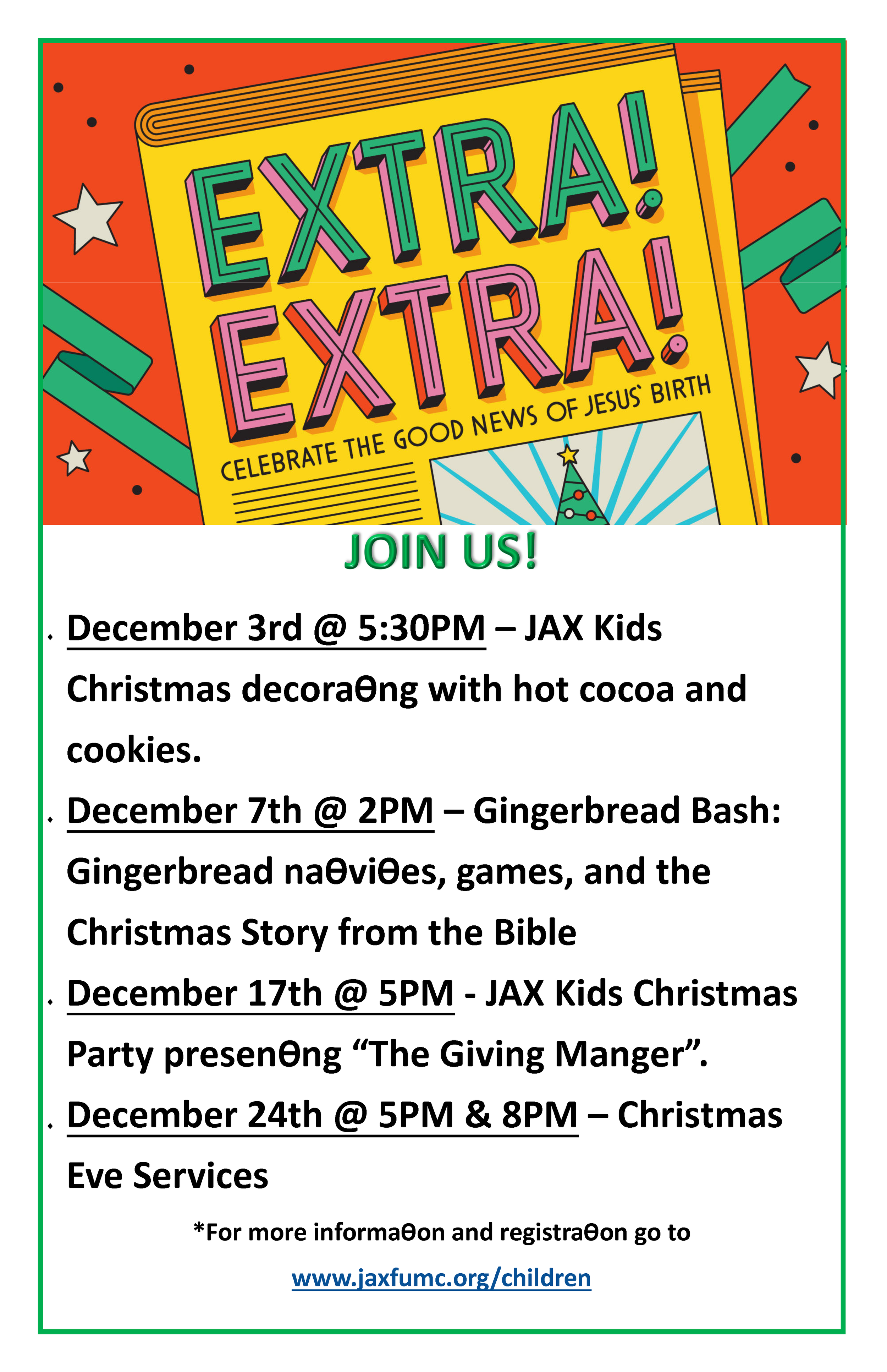 To receive our weekly newsletter, please contact the church office.